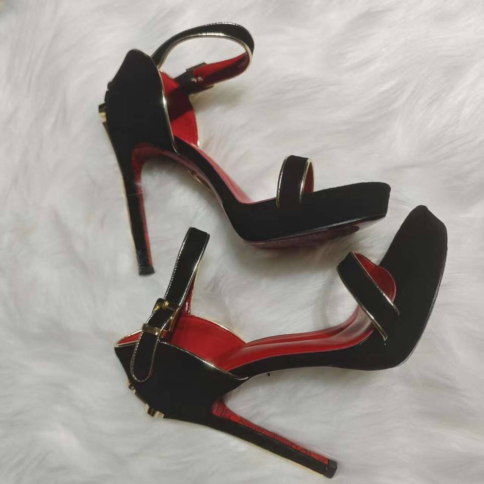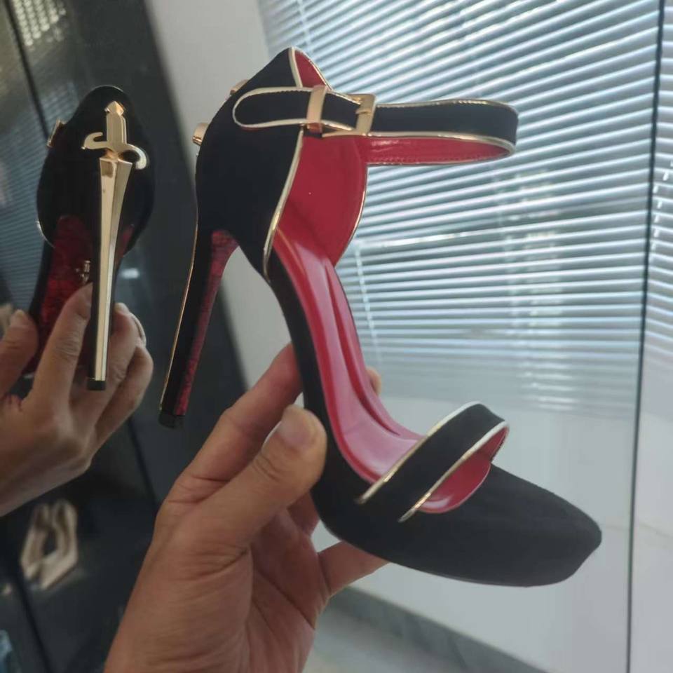 รองเท้าส้นเข็มสไตล์ยุโรปอเมริกันแบบใหม่ สายหนังแกะ ส้นสูง 12 ซม. รองเท้าผู้หญิง พื้นยาง ดีไซน์ดาบและคทา สีดำ สไตล์เรโทร