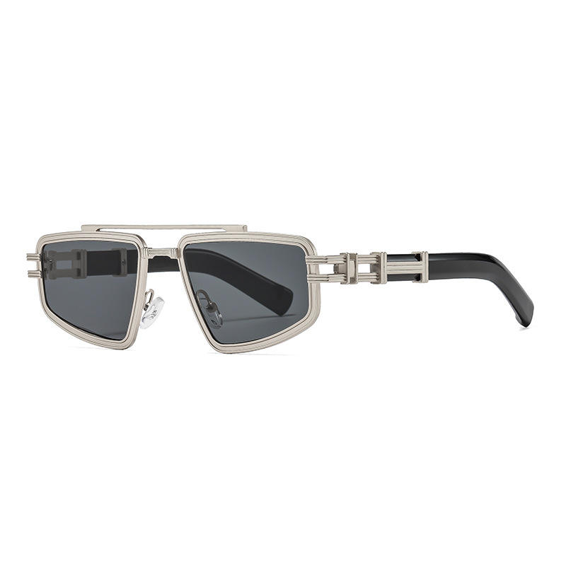 แว่นกันแดดทรงยุโรปอเมริกันสำหรับผู้หญิง กรอบโลหะ ป้องกันรังสียูวี 400 รุ่นที่ 3 เลนส์พีซี กรอบสีดำ