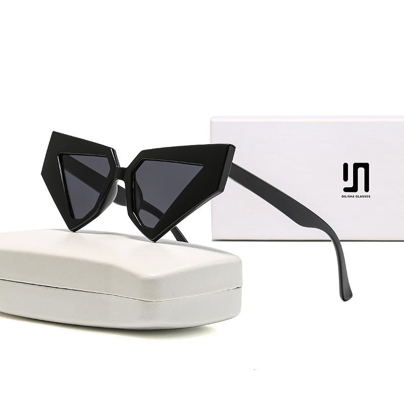 แว่นกันแดดทรงแคทอายแบบยูนิเซ็กส์สไตล์ยุโรปอเมริกัน กรอบพลาสติกสีดำ ป้องกันรังสียูวี 400 รุ่นที่ 3 เลนส์พีซี