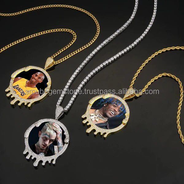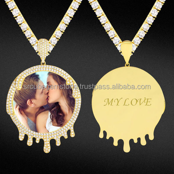New European and American Jewelry Hip-hop Xl Big Round Photo Pendant Gold and Silver Rose Gold Round Pendant Necklace