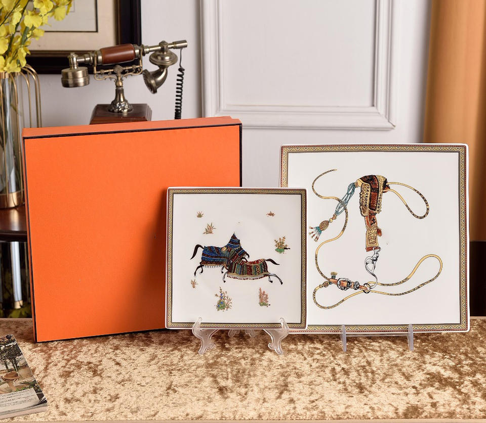 จานทรงสี่เหลี่ยมโบนไชน่า2ชิ้นใหม่หรูหราแบบชาวยุโรป