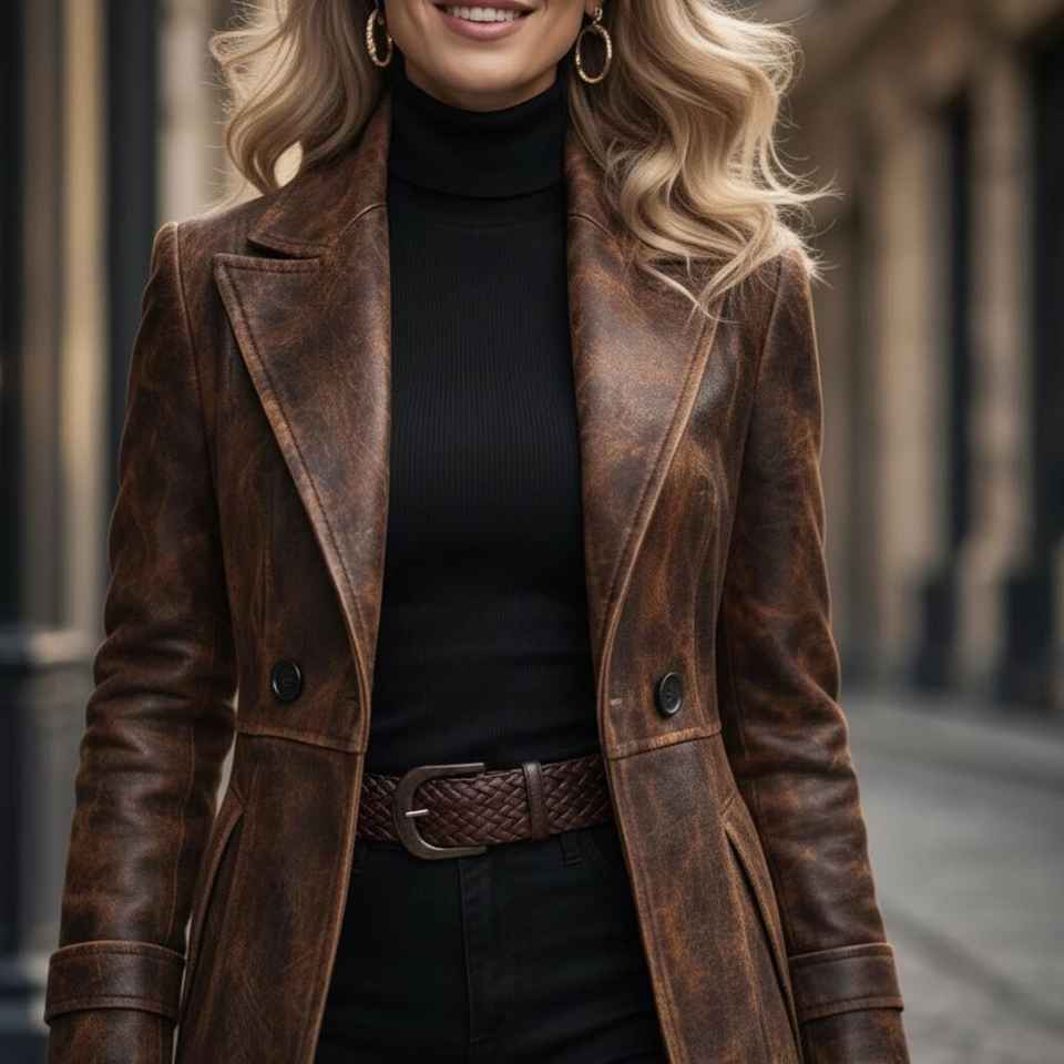 เสื้อแจ็คเก็ตหนังแกะสำหรับผู้หญิงสไตล์ยุโรปแบบใหม่ ระบายอากาศได้ดี กันน้ำ ทรงยาว ไซส์ใหญ่ แบบสั้นเข้ารูป แขนยาว แบบกลับด้านได้