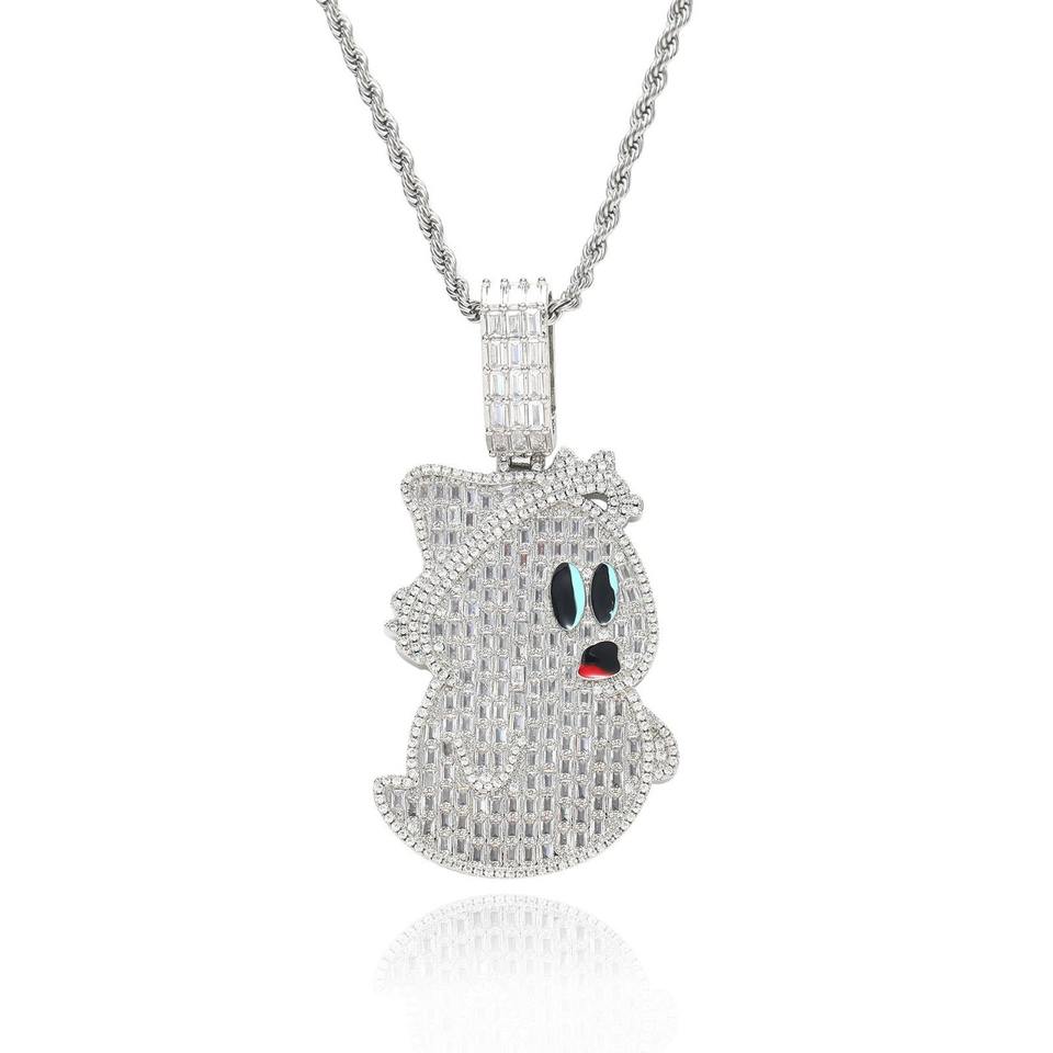 จี้รูปผีการ์ตูนสไตล์ยุโรปและอเมริกาแบบใหม่ ประดับเพชรเต็มตัว ชุบทอง สร้อยคอฮิปฮอปสำหรับผู้ชาย