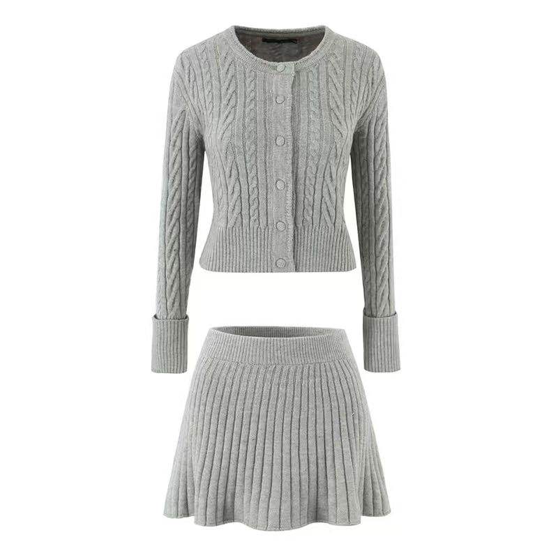 ชุดเซ็ตสองชิ้น เสื้อถักทรงบิดเกลียวแฟชั่นยุโรปและอเมริกาสำหรับผู้หญิง กระโปรงสั้น