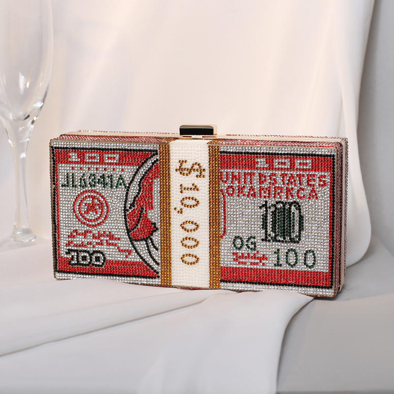 กระเป๋าถือผู้หญิงประดับพลอยเทียมรูปดอลลาร์ $ ใหม่สำหรับงานเลี้ยงตอนเย็นกระเป๋าคลัทช์สำหรับผู้หญิง