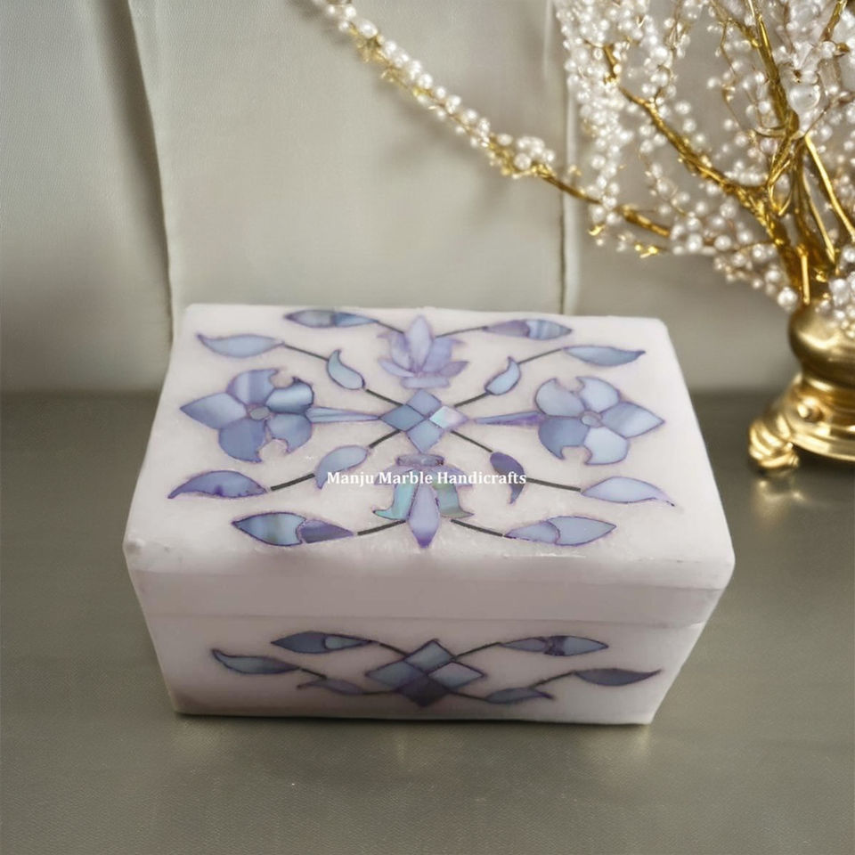New Exclusive Piece Blue MOP Design Marble Inlaid Box With Rectangle Shape Super Build Quality Product Use For Jewelry Box Gift