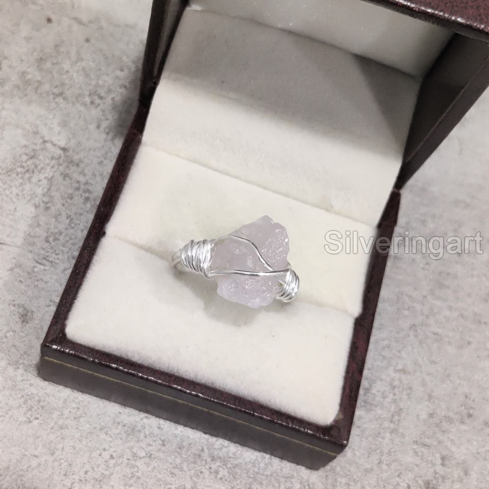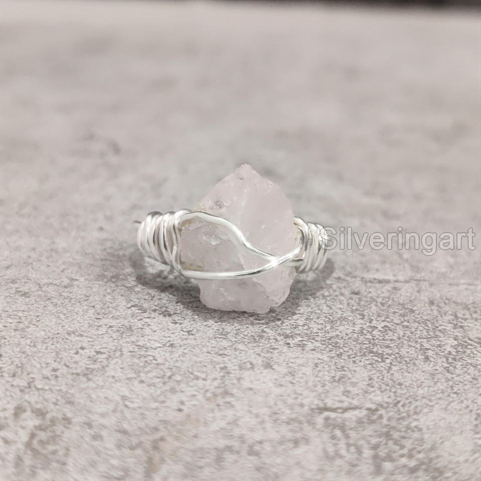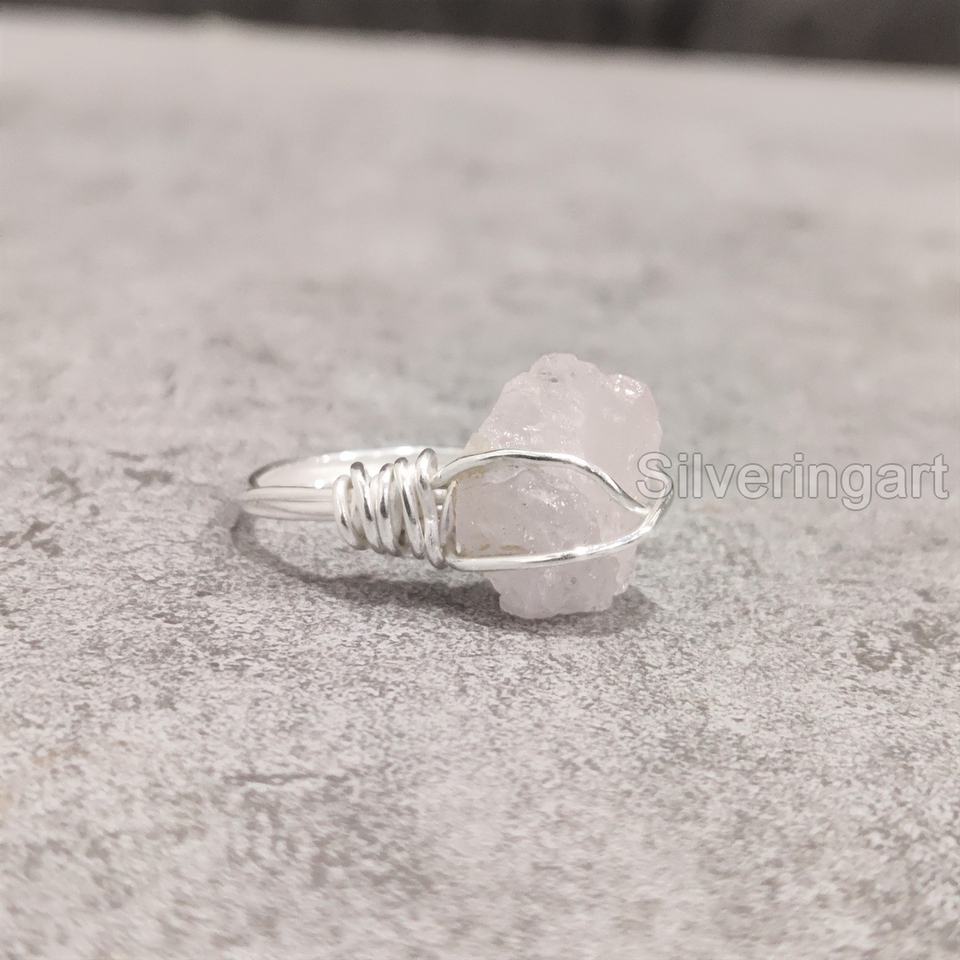 เครื่องประดับหินดิบสุดพิเศษสำหรับผู้หญิงแหวนสำหรับธรรมชาติโรสควอตซ์พลอย April สายลวด925แหวนเงินสเตอร์ลิง