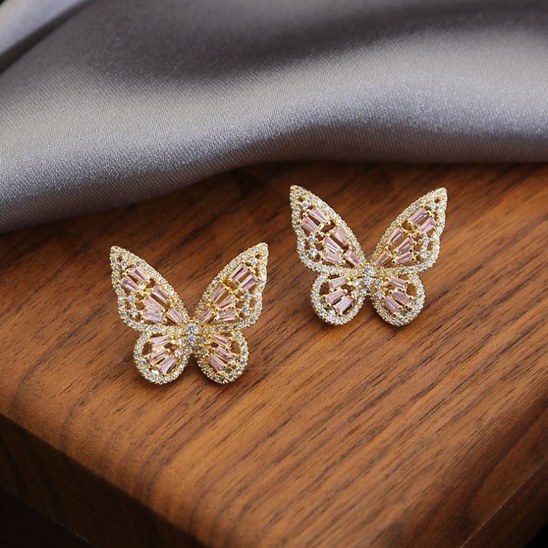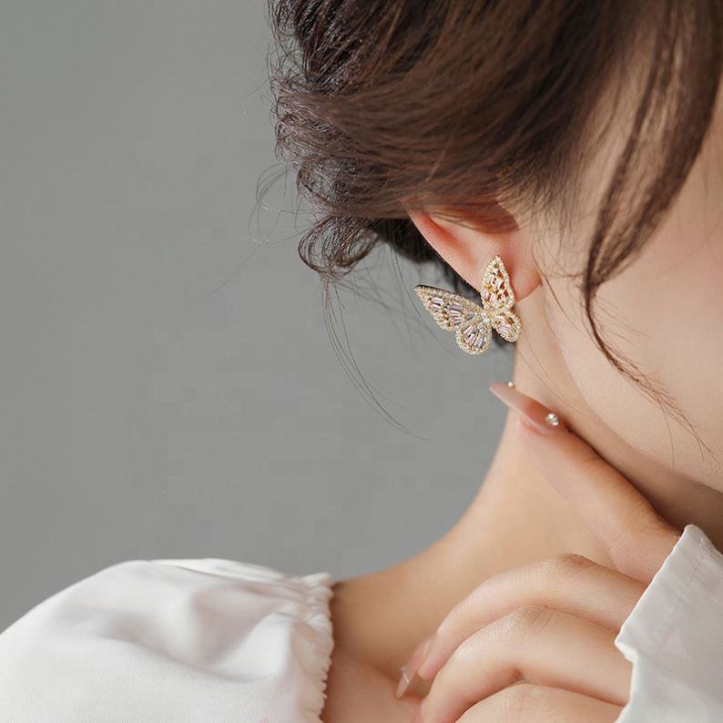 ต่างหูแบบติดหูรูปผีเสื้อประดับเพชรซิร์คอนสีสันสดใส ดีไซน์หรูหรา ทันสมัย สง่างาม สำหรับผู้หญิง