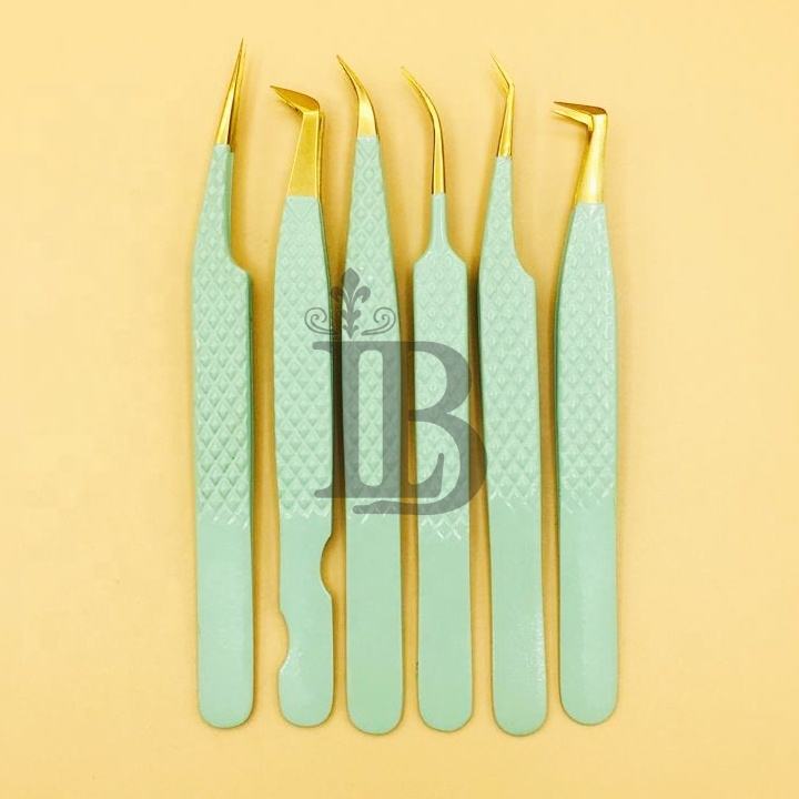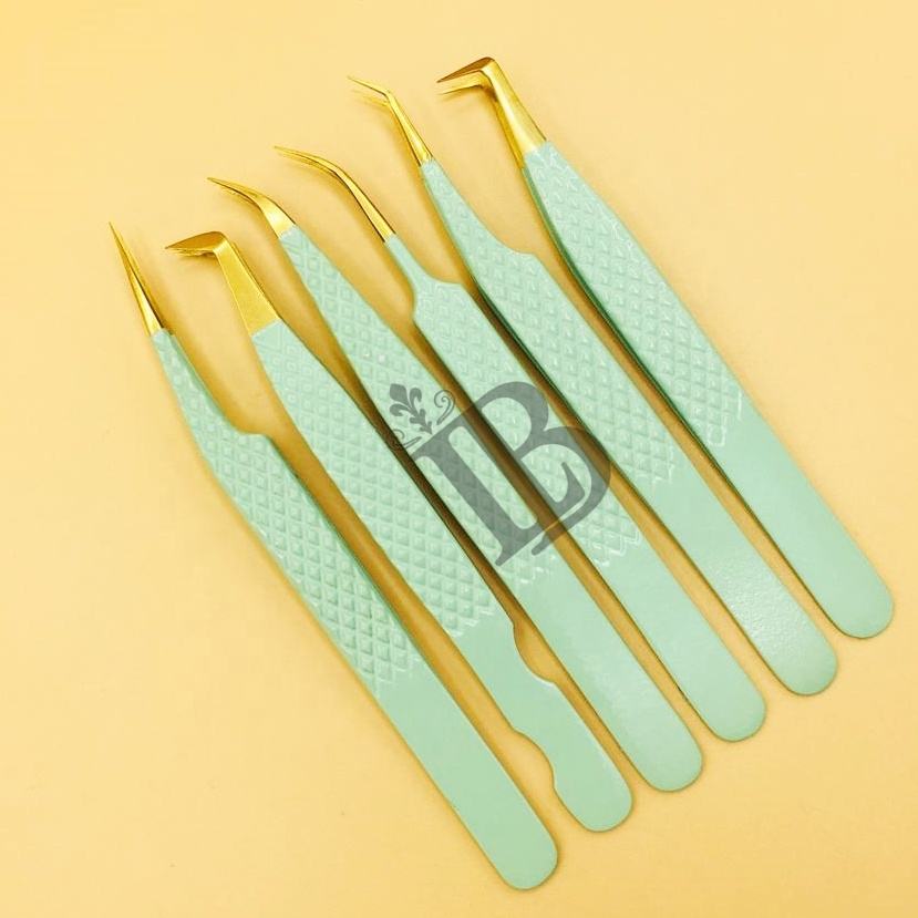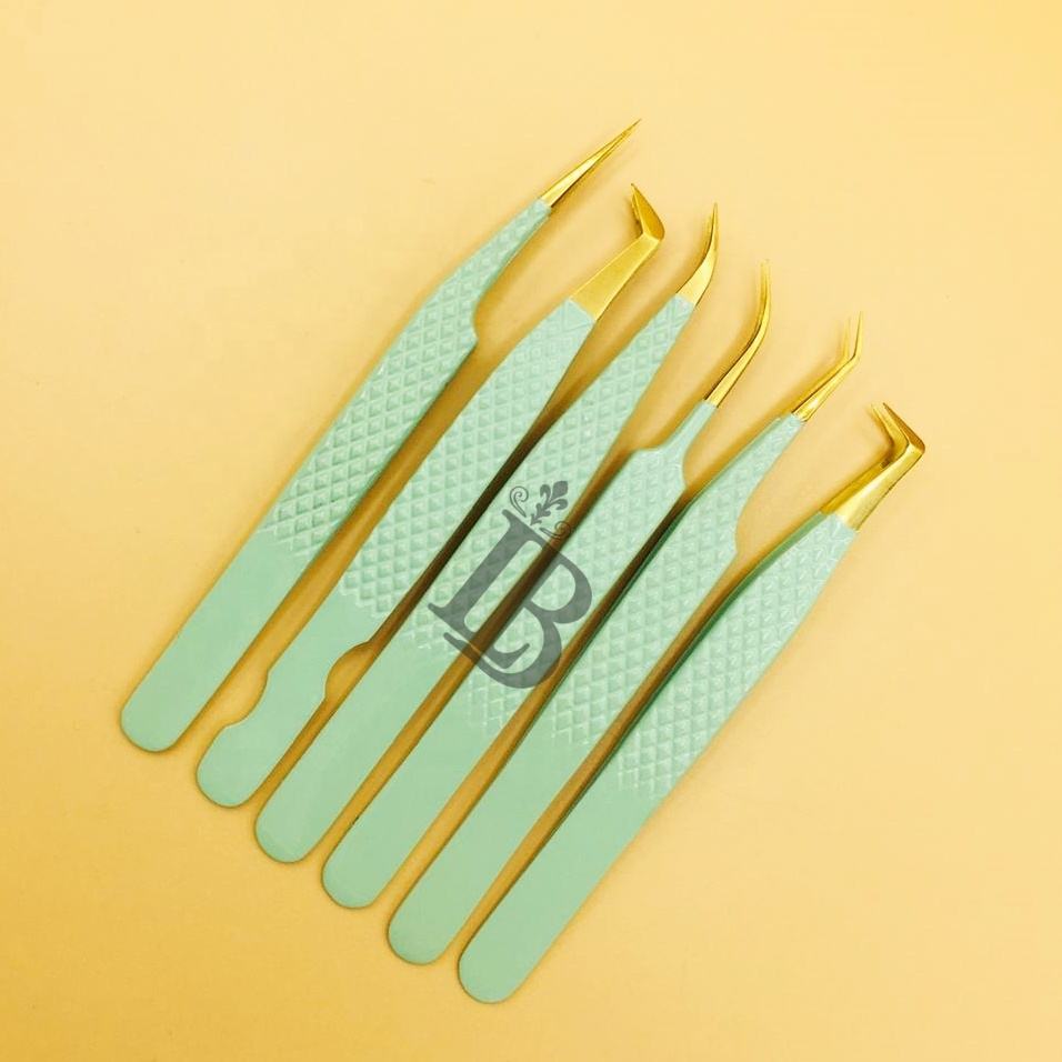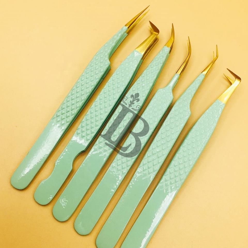 แหนบต่อขนตาแบบใหม่ แหนบยอดนิยม แหนบปลายทอง แหนบต่อขนตามิงค์ โลโก้ฟรี ปลายไฟเบอร์ฟรี ด้ามจับโค้งฟรี