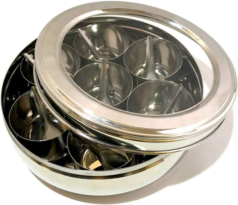 โรงงานมาใหม่คุณภาพสูงสแตนเลสกล่องเครื่องเทศกล่องมาซาลา 9 ชามและ SS ฝาครอบแผ่น