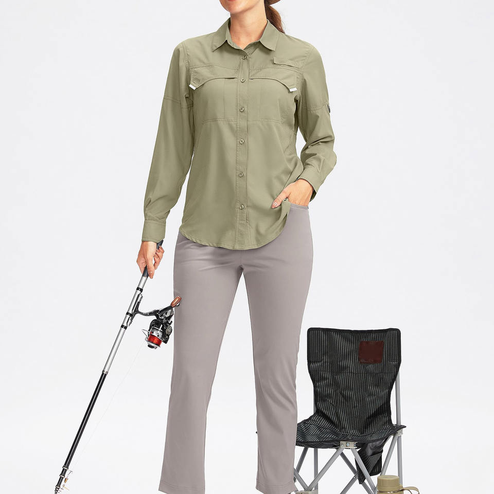 เสื้อเชิ้ตตกปลาแขนยาวสำหรับผู้หญิง ผลิตจากโรงงานใหม่ แบบ OEM/ODM เนื้อผ้าซับเหงื่อ ป้องกันแสงแดด สวมใส่สบาย ติดกระดุม