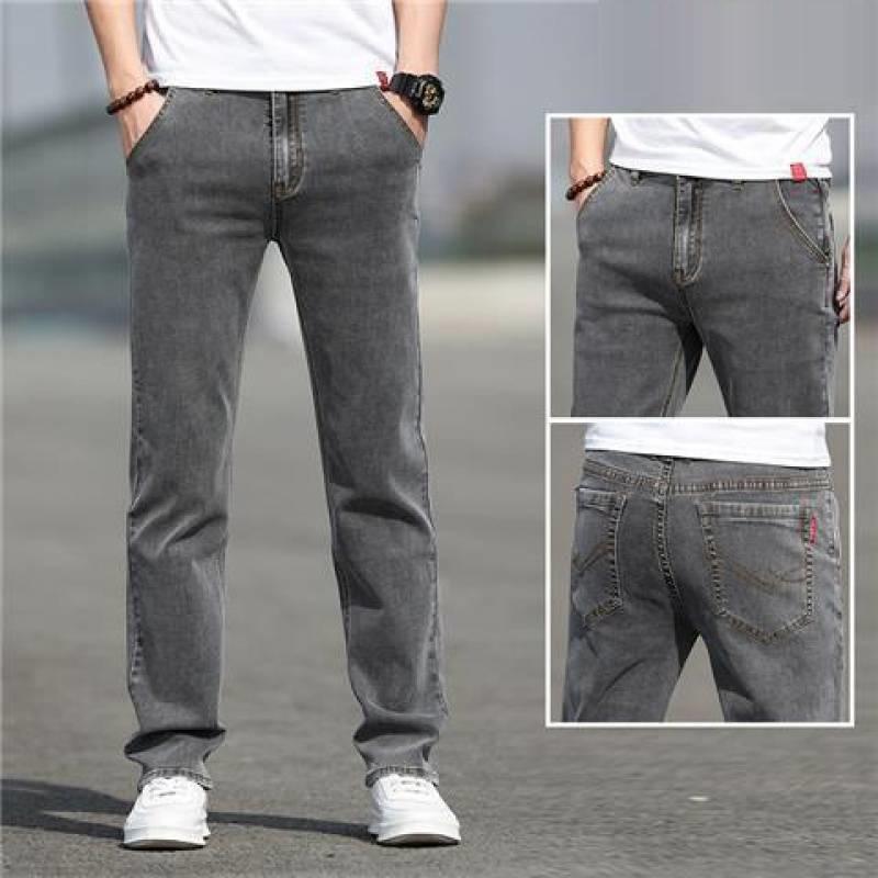 กางเกงยีนขายาวสำหรับผู้ชายกางเกงขายาวทรงตรงกางเกงผ้ายืดใส่สบายแบบลำลองดีไซน์ใหม่แฟชั่นฤดูร้อน