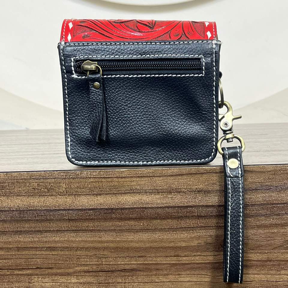 Hand Tooled Genuine Leather Mini Wristlet Coin Purse