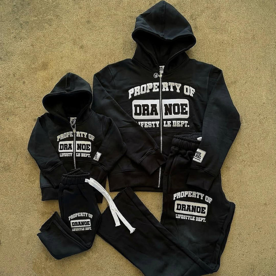 คอลเลคชั่นฤดูใบไม้ร่วงใหม่ชุดเสื้อผ้าผู้ชายแบบมีฮู้ด2ชิ้นทำจากผ้าฝ้ายมีซิปรูดสำหรับผู้ชาย