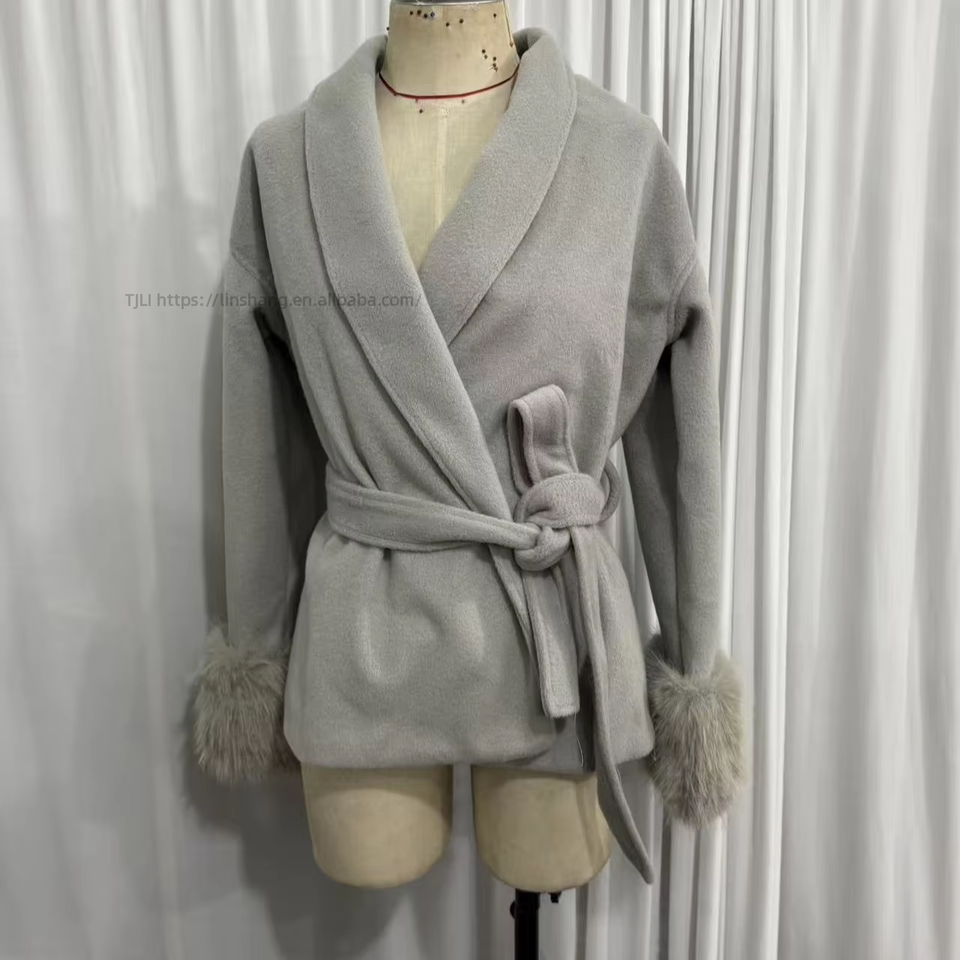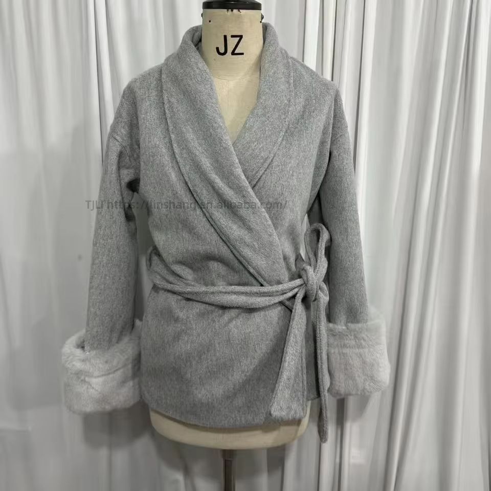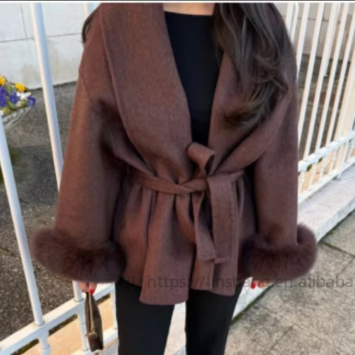 เสื้อโค้ทขนสัตว์สีพื้นแบบลำลองสำหรับผู้หญิง คอลเลคชั่นฤดูใบไม้ร่วง/ฤดูหนาวใหม่ ดีไซน์หรูหรา คอเสื้อหลวม แฟชั่น