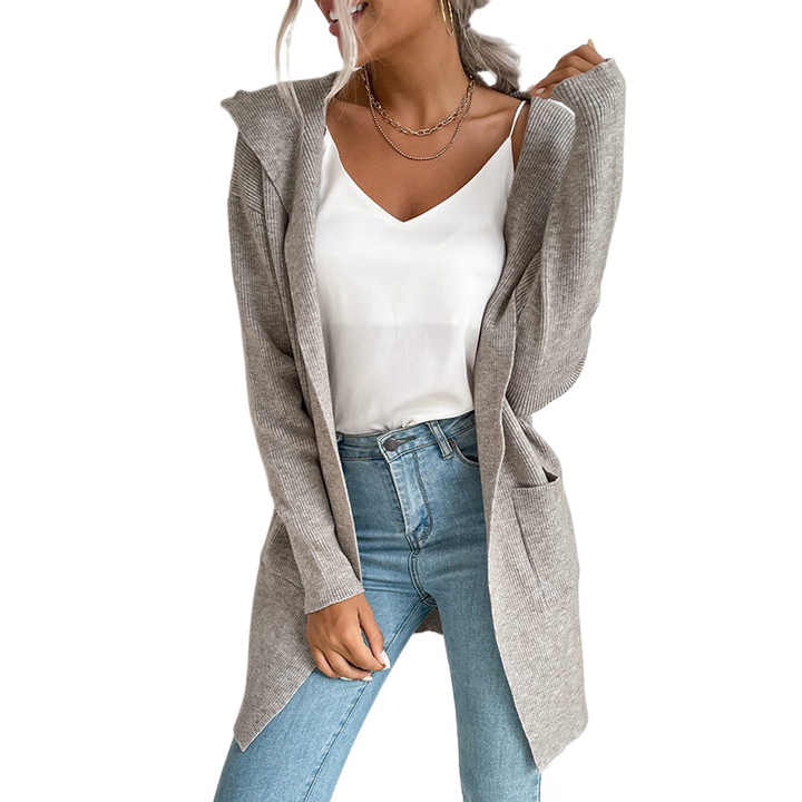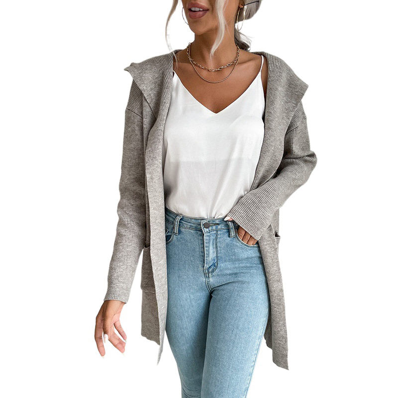 แจ็คเก็ตมีฮู้ดขนแกะสองด้านสำหรับผู้หญิงเสื้อโค้ทตัวยาวเปิดหน้าสำหรับฤดูใบไม้ร่วงใหม่