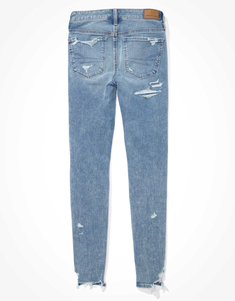 กางเกงยีนส์ซักสีฟ้าอ่อนแบบสกินนี่ของ2024แฟนซีแบบใหม่