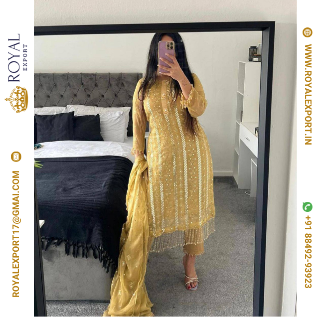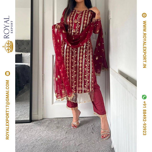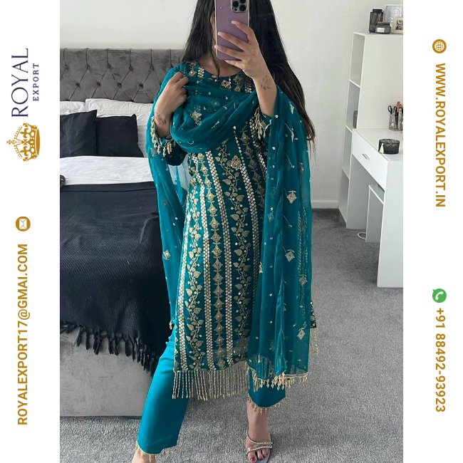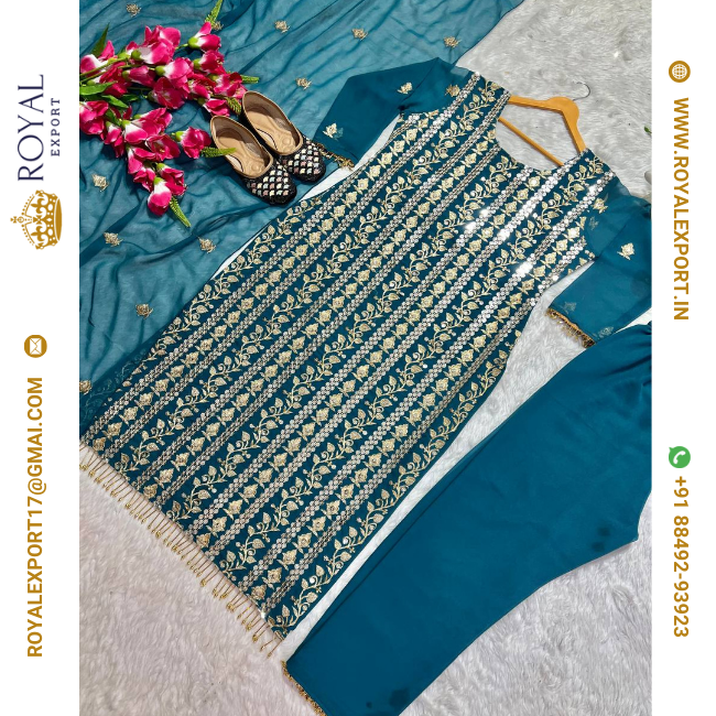 Georgette กางเกงขายาวด้านบนยาวแฟนซีใหม่พร้อมด้วย duppta ทันสมัยและลำดับการทำงาน