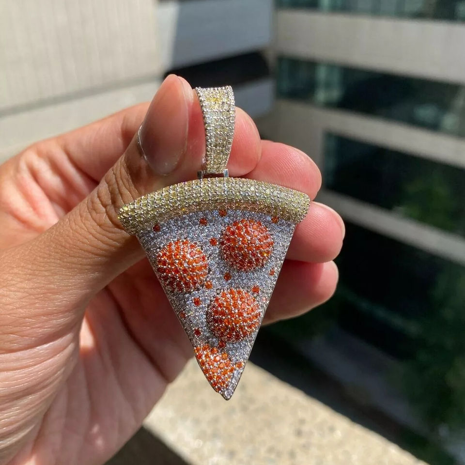 จี้รูปพิซซ่าแฟนซีแบบใหม่มีเพชรเจียระไนกลมและเงินสเตอริง S925สำหรับทุกเพศ