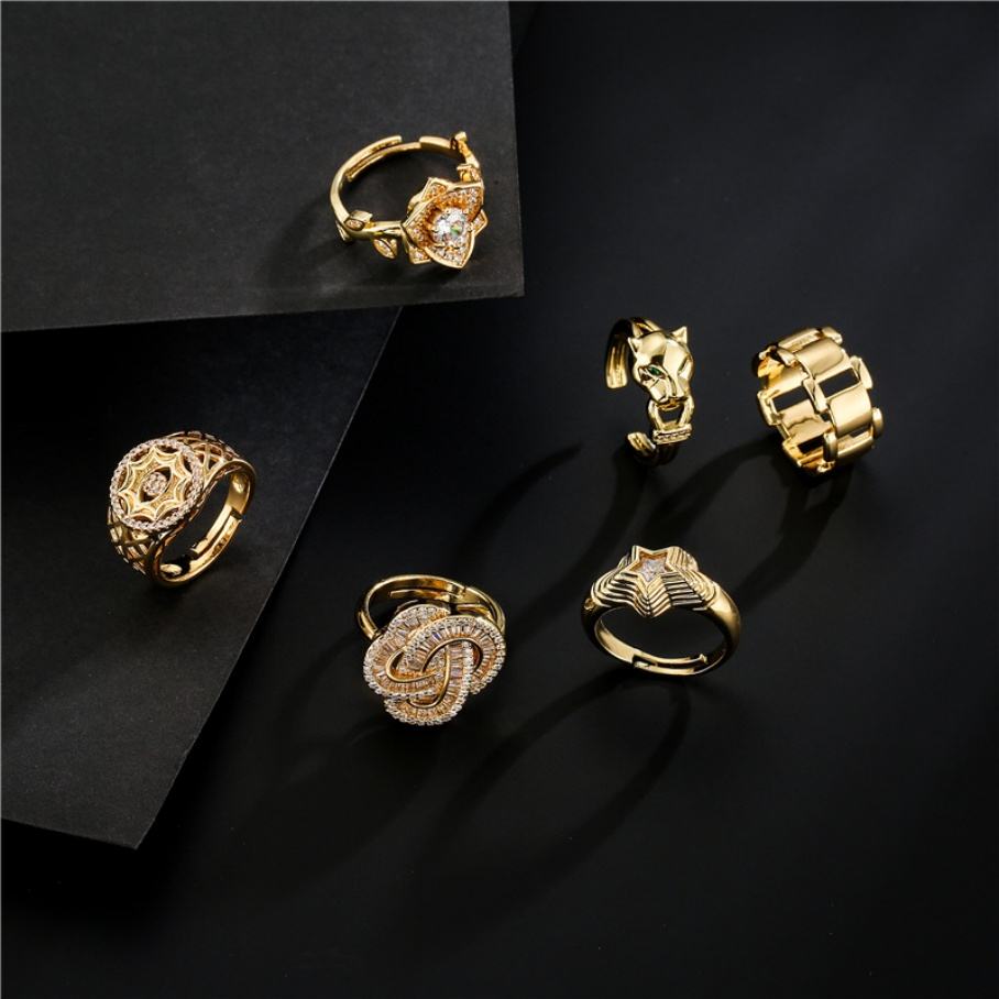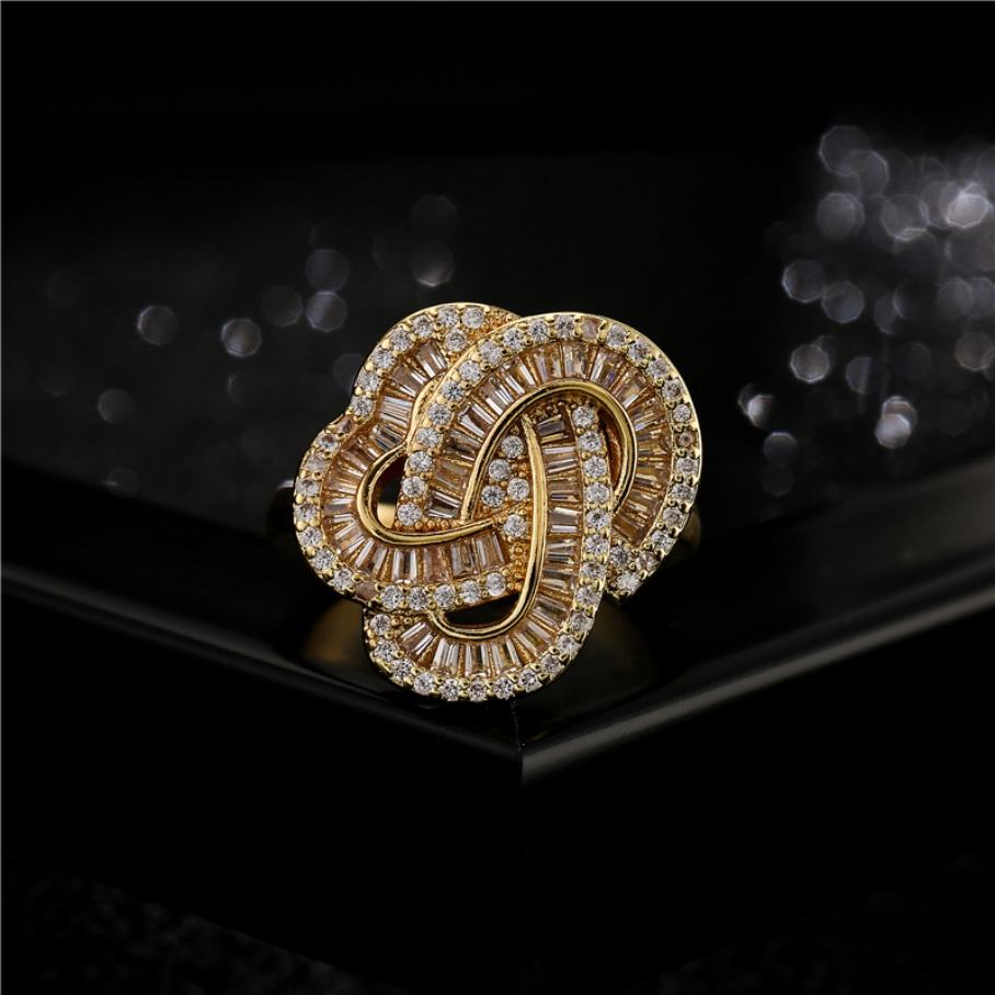 แหวนทองแดงชุบทอง 18K ลายดอกไม้ ประดับเพชร CZ ทรงบาแก็ตต์ 5A สไตล์ฮิปฮอป สำหรับงานแต่งงาน งานปาร์ตี้ และวันครบรอบของสาวๆ