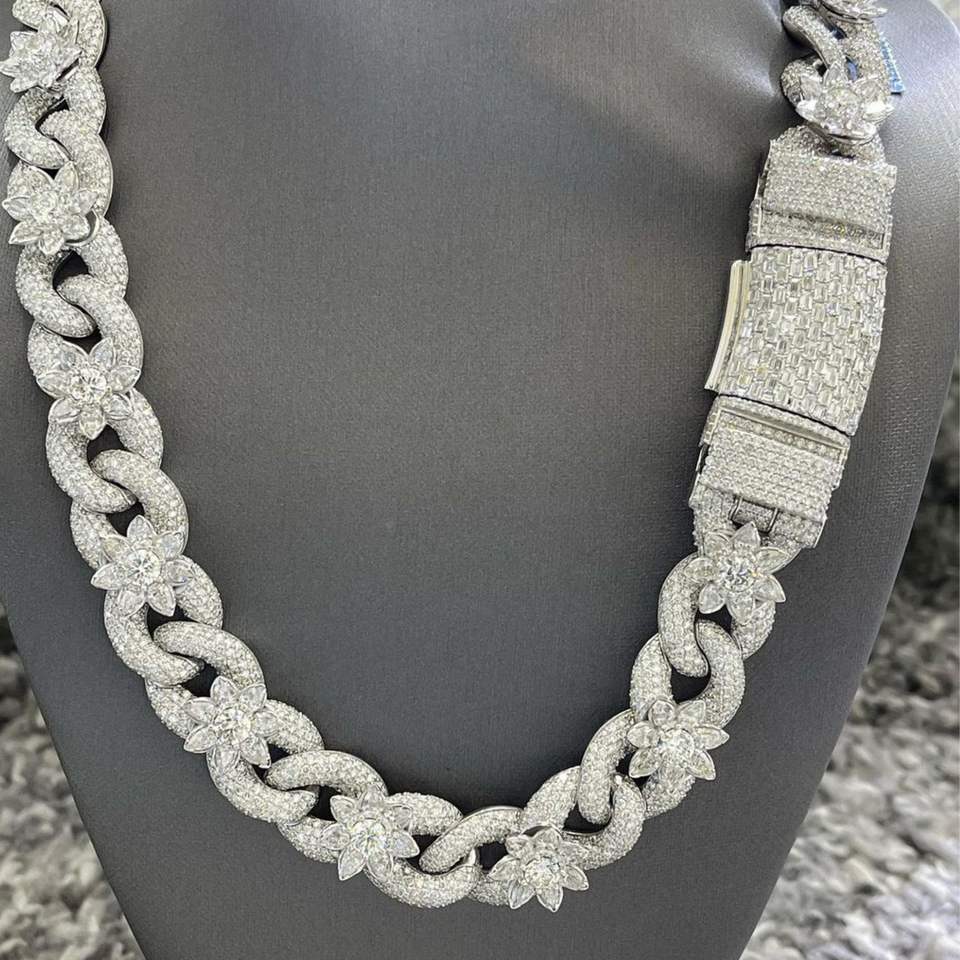 สร้อยคิวบาลายคลาสสิกแบบยูนิเซ็กซ์ ขนาด 20 มม. ชุบเงินแท้ 925 ประดับเพชรโมอิสซาไนต์แบบกำหนดเองได้