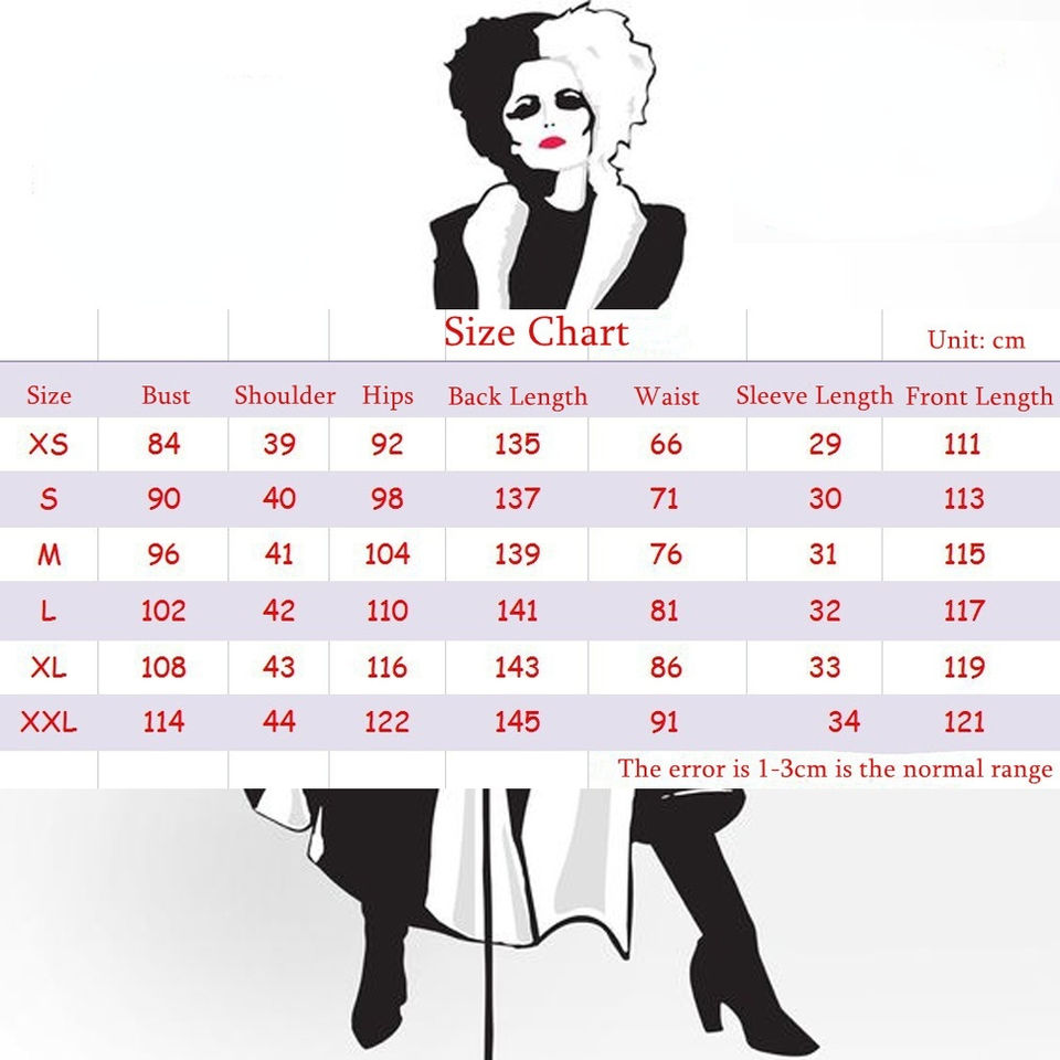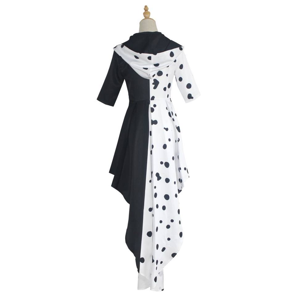 New Fashion Adult Women's 101 Dalmatians Cruella De Vil Cosplay Costume Set Includes Black White Dress Skirts Wig for Halloween