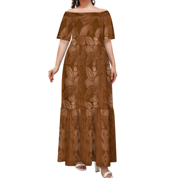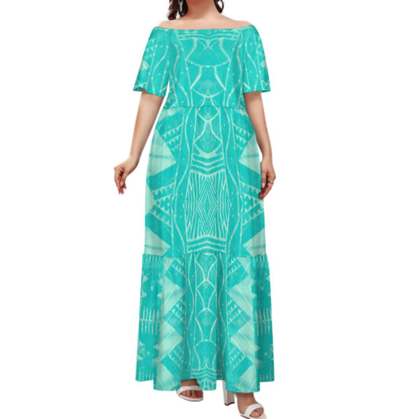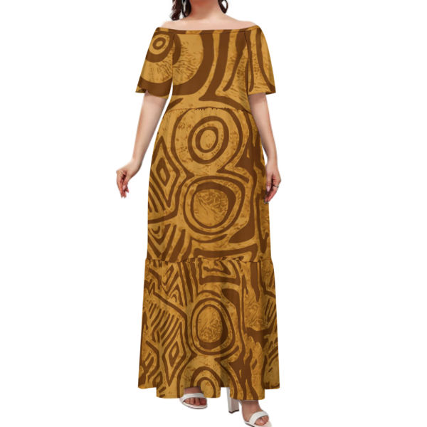 เดรสยาวลำลองแฟชั่นใหม่สำหรับฤดูใบไม้ร่วง แบบเปิดไหล่ สไตล์โพลินีเซียนและเม็กซิกันสำหรับผู้หญิง