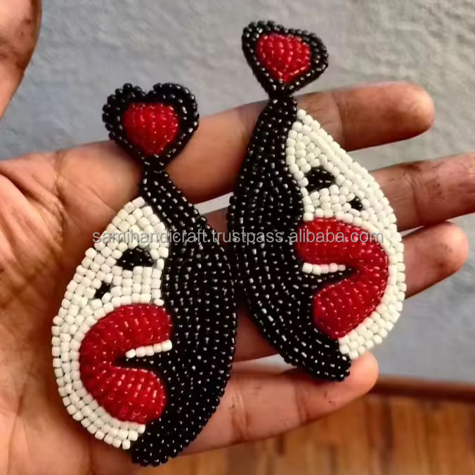 ต่างหูห้อยประดับลูกปัดแบบคลาสสิคสไตล์เรโทร ดีไซน์ปักลายลูกปัด สามารถปรับแต่งสีได้ สำหรับผู้หญิงในโอกาสวันครบรอบ