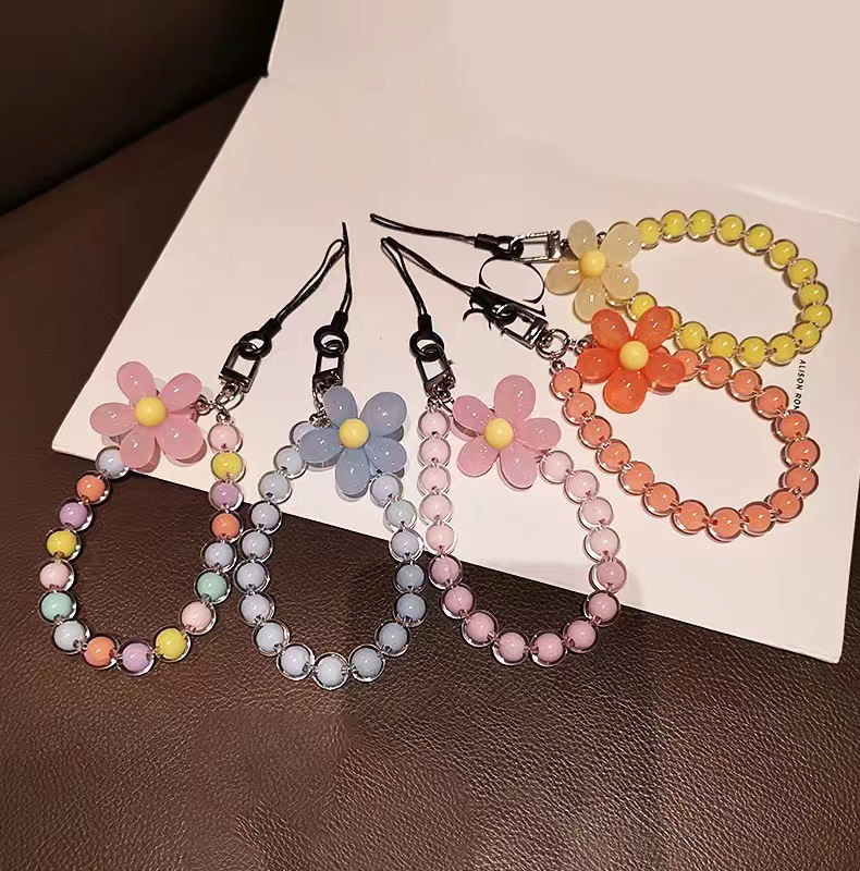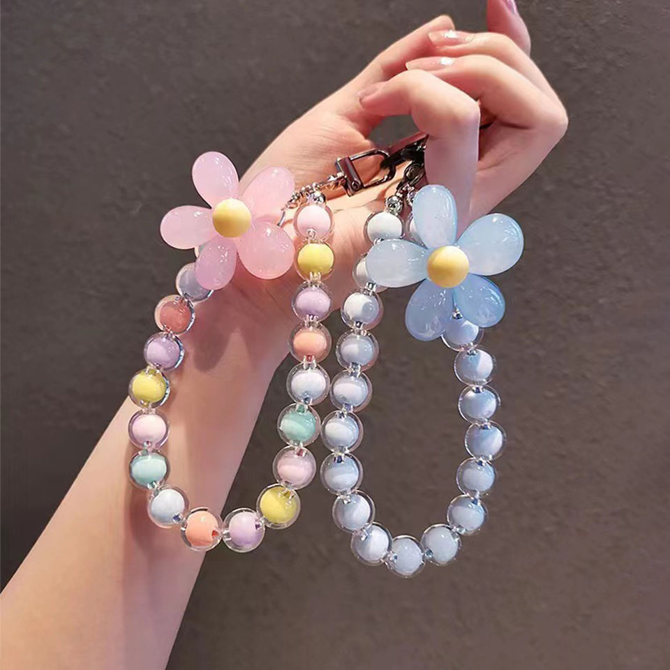 สายคล้องโทรศัพท์มือถือแฟชั่นใหม่ประดับลูกปัดหลากสีสายคล้องข้อมือสำหรับสมาร์ทโฟนทุกรุ่น