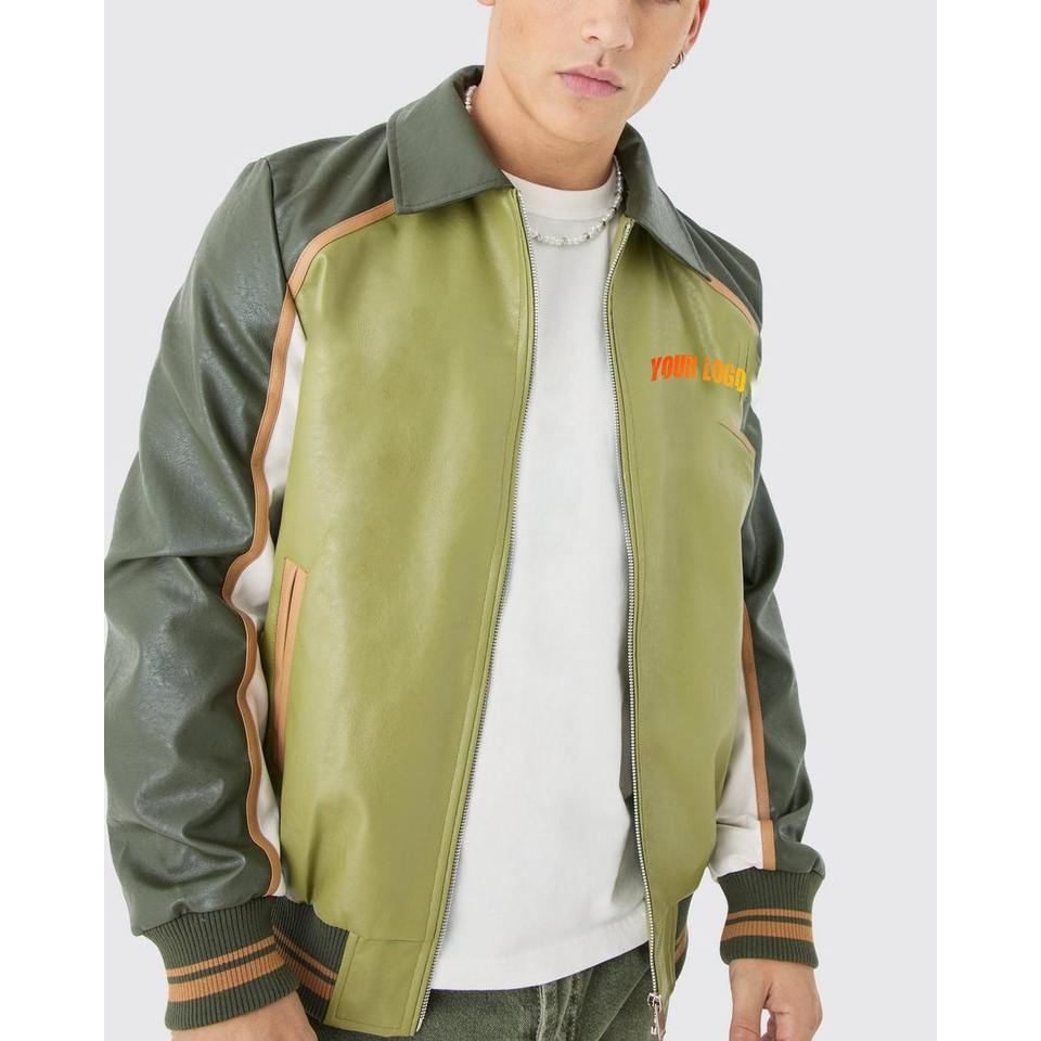 แจ็คเก็ตหนังแฟชั่นใหม่ สวมใส่สบาย ดีไซน์คัลเลอร์บล็อกแบบต่อผ้า แขนยาว ปกคอพับ ปิดด้วยซิป สไตล์วิทยาลัย