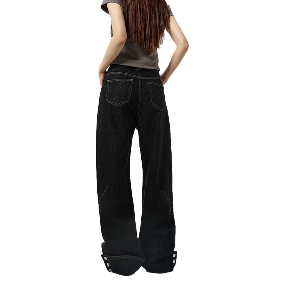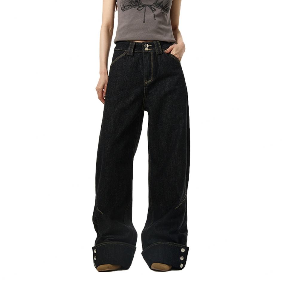 กางเกงยีนส์ทรงบอยเฟรนด์สีดำดิบสไตล์วินเทจ Y2K ผ้าฝ้าย 100% สำหรับผู้หญิง แฟชั่นใหม่สั่งตัดได้