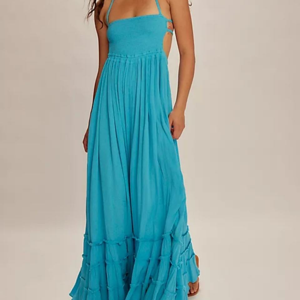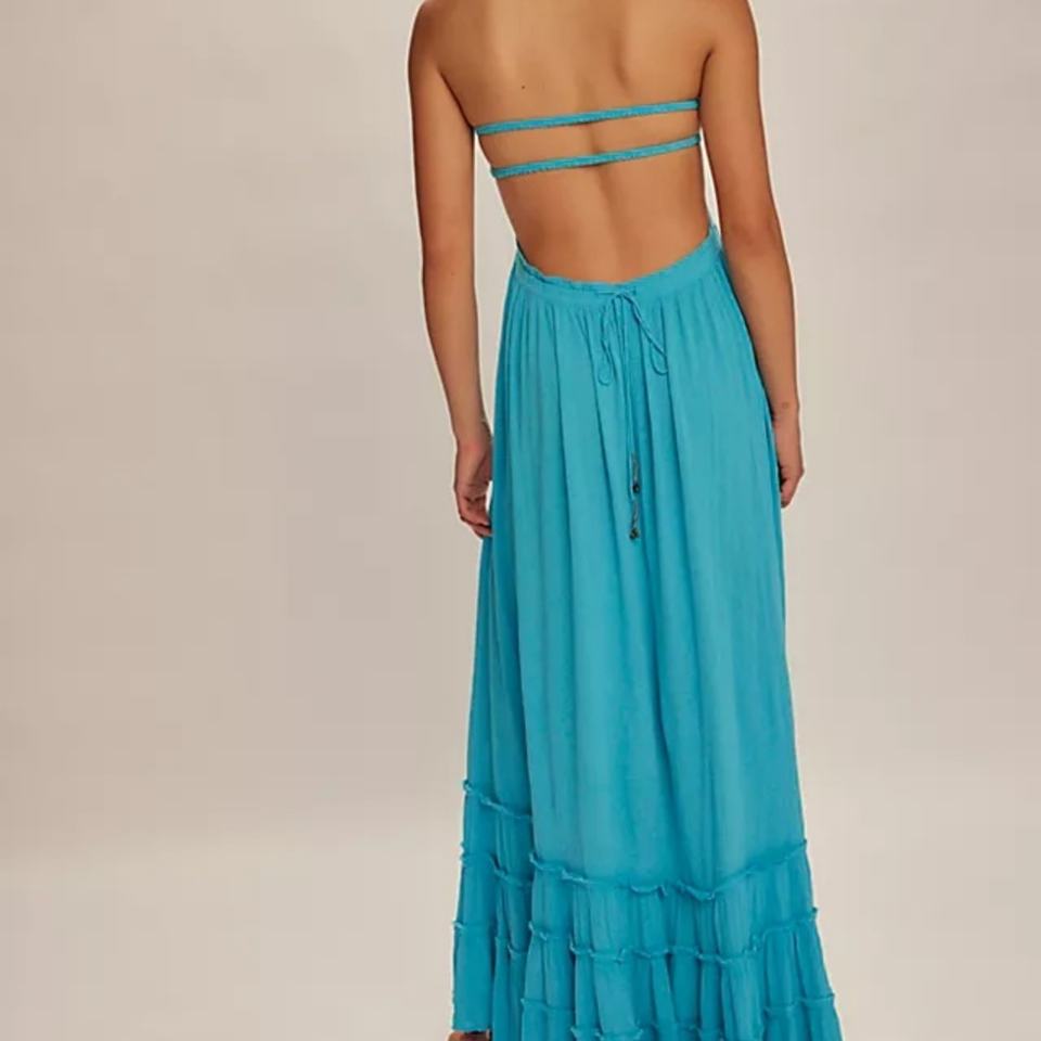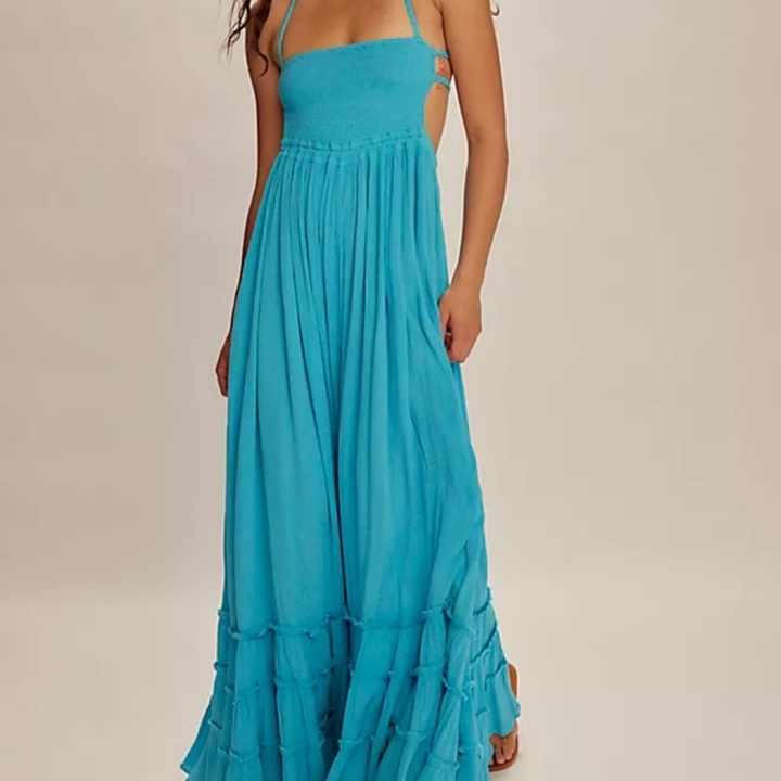 เดรสแฟชั่นใหม่แบบสั่งตัด คอ halter สายรัดเอว ทรงสลิป ไม่มีแขน สายเดี่ยว เซ็กซี่ ยาว สไตล์ลำลอง สำหรับฤดูร้อน สำหรับผู้หญิง
