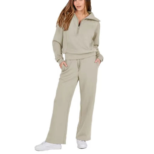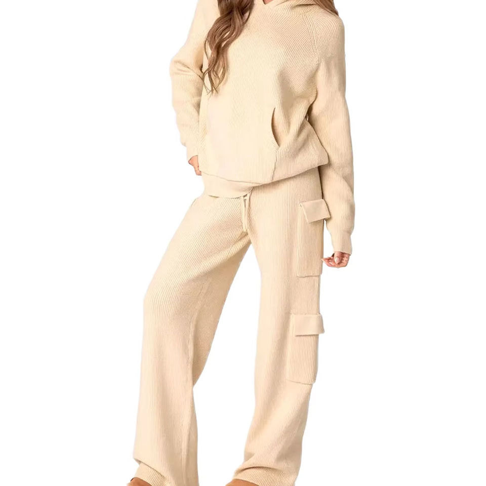 ชุดเซ็ตไหมพรมถักแฟชั่นใหม่แบบสั่งทำพิเศษ เสื้อแขนยาวและกางเกงขายาวลำลองสำหรับผู้หญิง