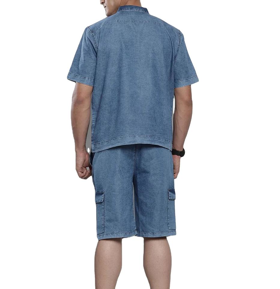 ชุดเซ็ตเสื้อยืดและกางเกงขาสั้นสไตล์สตรีทแวร์ลำลอง ยีนส์ฟอกสี แต่งลายปัก พร้อมปักโลโก้ตามสั่ง แฟชั่นใหม่ สำหรับผู้ชาย