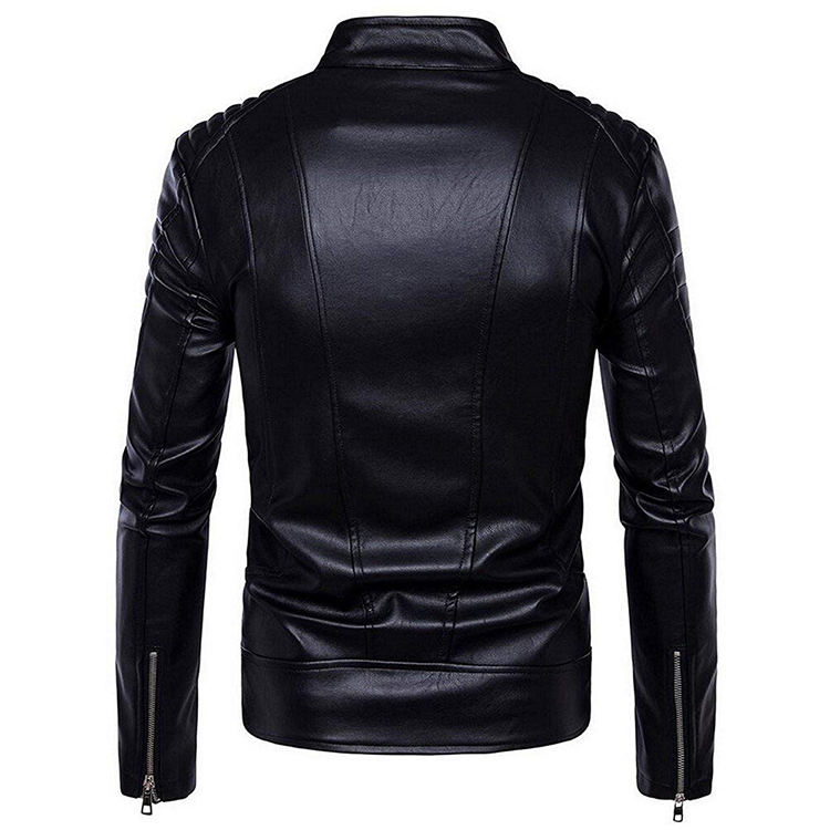 แจ็คเก็ตหนังแฟชั่นใหม่ สกรีนโลโก้ได้ แบบ unisex ซิปเฉียง สไตล์มอเตอร์ไซค์ สีดำ ขายดี