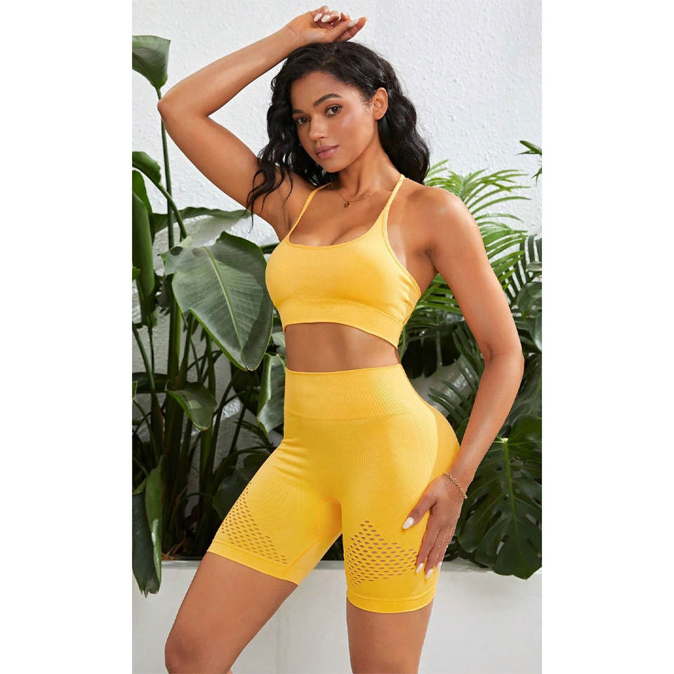 บราและกางเกงขาสั้นเล่นโยคะไร้ตะเข็บสำหรับผู้หญิงชุดออกกำลังกายเล่นกีฬาฟิตเนสแบบแฟชั่นออกแบบโลโก้ได้ตามต้องการขนาดใหญ่พิเศษ