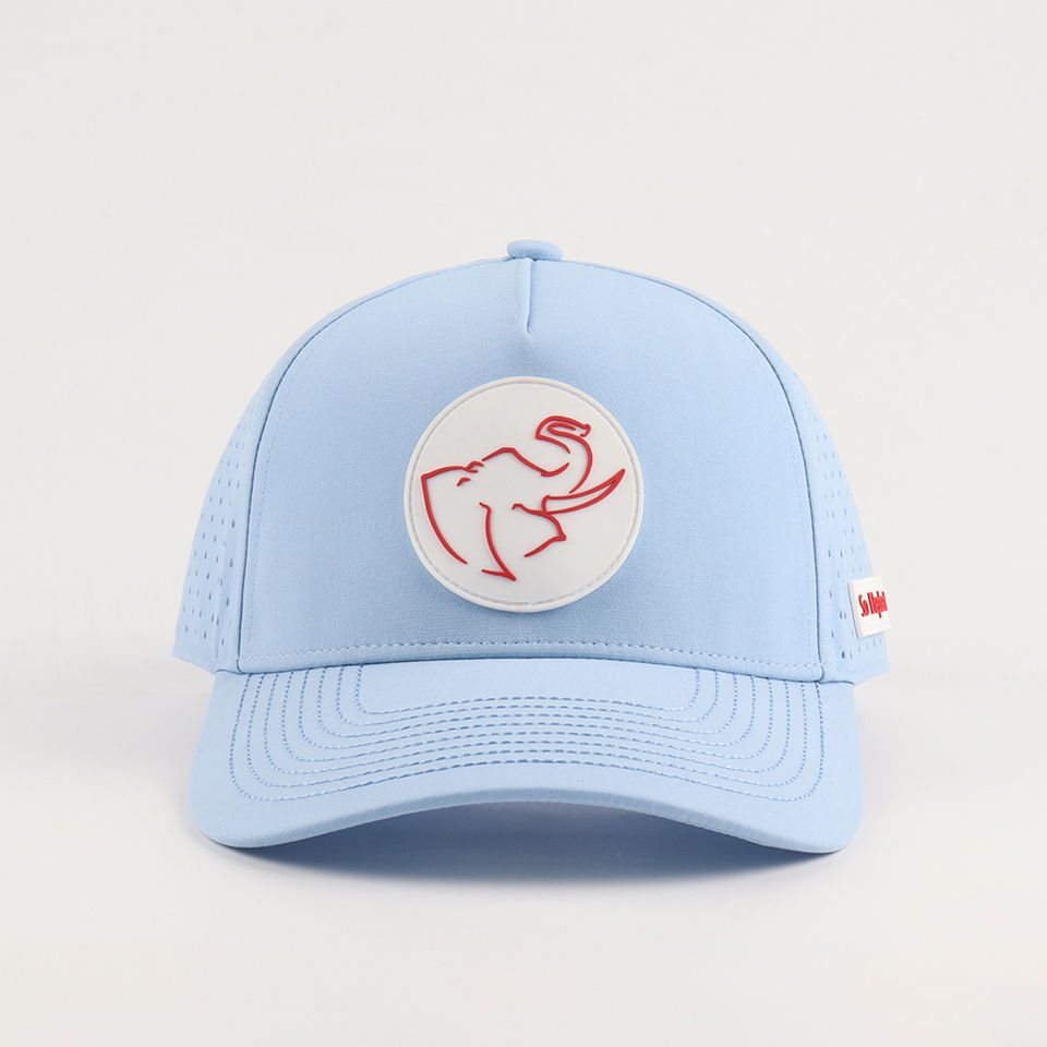 แฟชั่นใหม่แผ่นพีวีซีโพลีเอสเตอร์100% ออกแบบได้ตามต้องการแผ่นปะติดโลโก้5แผงกันน้ำหมวกเบสบอลออกซ์ฟอร์ดจุดกอล์ฟหมวกตัดด้วยเลเซอร์คุณพ่อเป็นรูพรุน