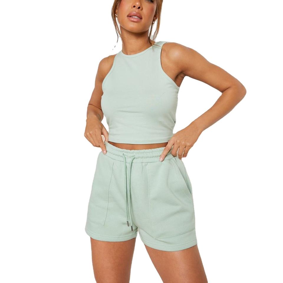 ชุดกางเกงขาสั้นผ้าฝ้าย2ชิ้นสำหรับผู้หญิงชุดกางเกงขาสั้นเสื้อแขนกุดและกางเกงขาสั้นสำหรับใส่ในยิมชุดกีฬาฤดูร้อนแบบกำหนดเองได้แฟชั่นใหม่2026