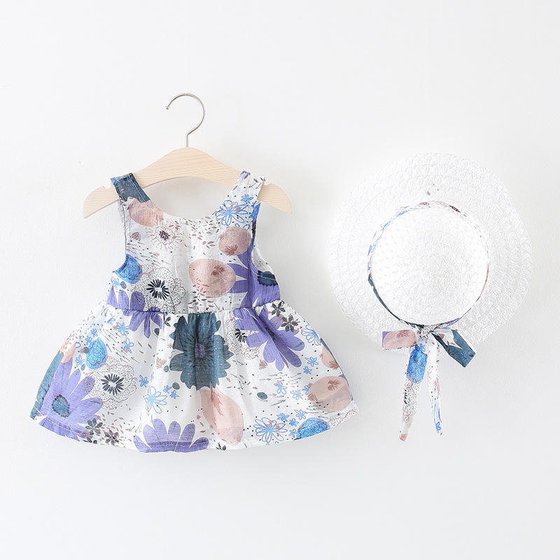 ชุดเดรสเด็กผู้หญิงแฟชั่นใหม่น่ารัก ชุดลำลองผ้าฝ้าย เสื้อผ้าเด็กเล็ก ชุดเด็กผู้หญิง แถมหมวกฟรี