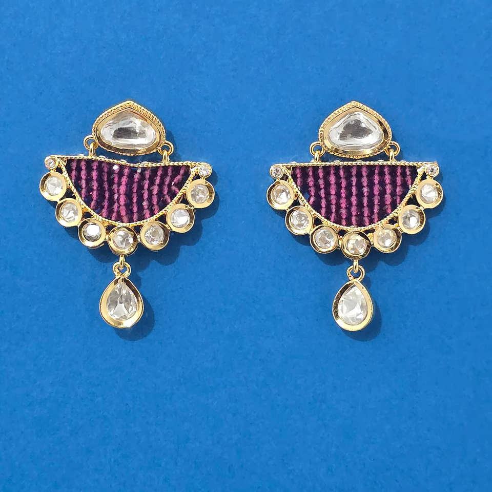ตุ้มหูแฟชั่นใหม่สุดฮิต kundan คลาสสิคชุบทอง