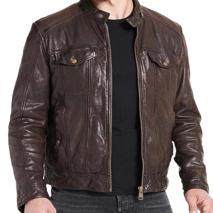 แจ็คเก็ตหนังผ้าแคนวาสทรงยาวบาง ดีไซน์แฟชั่นใหม่สำหรับผู้ชาย ปี 2026 พร้อมโลโก้ด้านหน้า