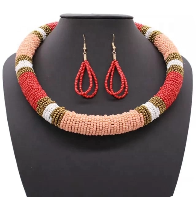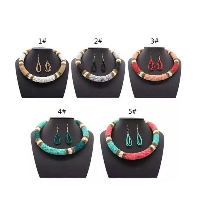 ชุดสร้อยคอและต่างหูปักลายแฟชั่นใหม่ชุดเครื่องประดับลูกปัดแก้วที่มีสไตล์เครื่องประดับสร้อยคอเครื่องประดับดีไซน์โฮมเมด