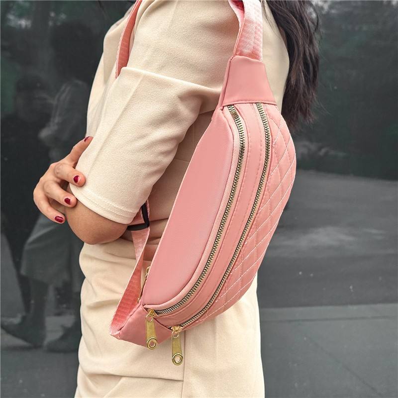 กระเป๋าคาดอกลายเพชรแฟชั่นใหม่ สีชมพู กันน้ำ ซิปปิด สำหรับกิจกรรมกลางแจ้ง กระเป๋าสะพายข้างผู้หญิง ฤดูร้อน 2025