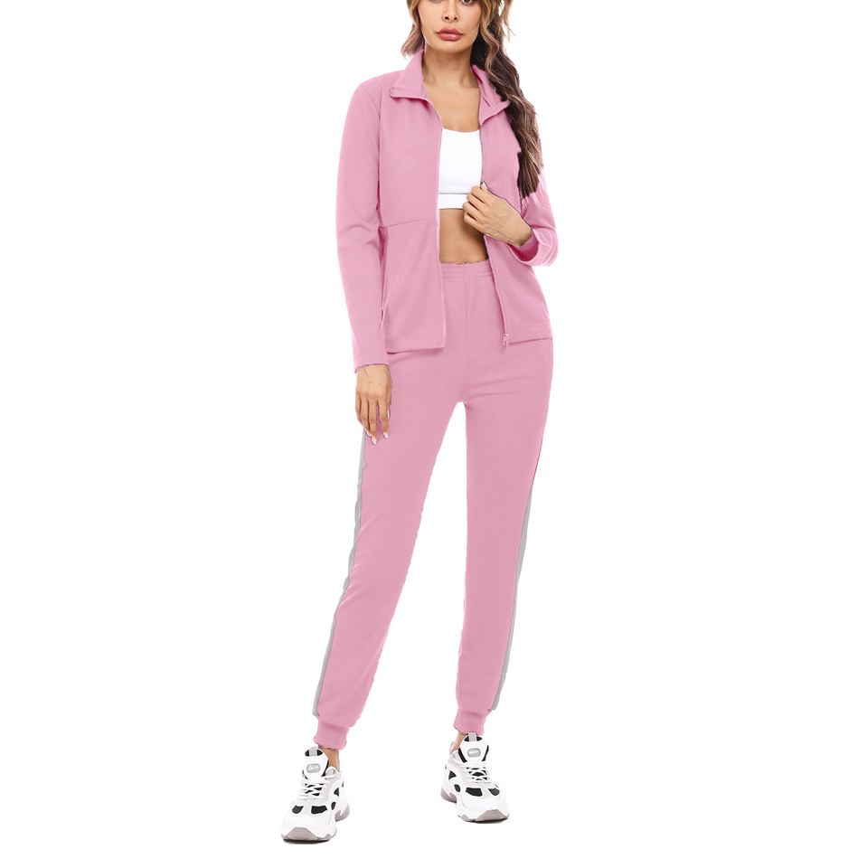 ชุดกีฬา2ชิ้นสำหรับผู้หญิงชุดออกกำลังกายกางเกงวอร์มและมีฮู้ดสำหรับผู้หญิงชุดเล่นกีฬาแบบออกแบบได้ตามต้องการ