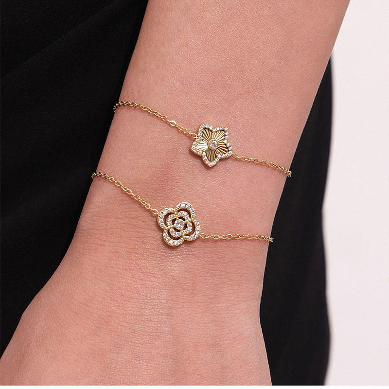 ชื่อเครื่องประดับ:สร้อยคอและสร้อยข้อมือสองชั้นลายใบโคลเวอร์สี่แฉกและดาวห้าแฉกประดับเพชรเซอร์คอน