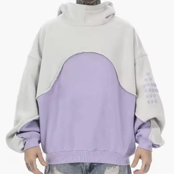 เสื้อฮู้ด100% โอเวอร์ไซส์สำหรับผู้ชายผ้าคอตตอนสีทึบดีไซน์ไหล่ปล่อยสำหรับฤดูใบไม้ผลิ