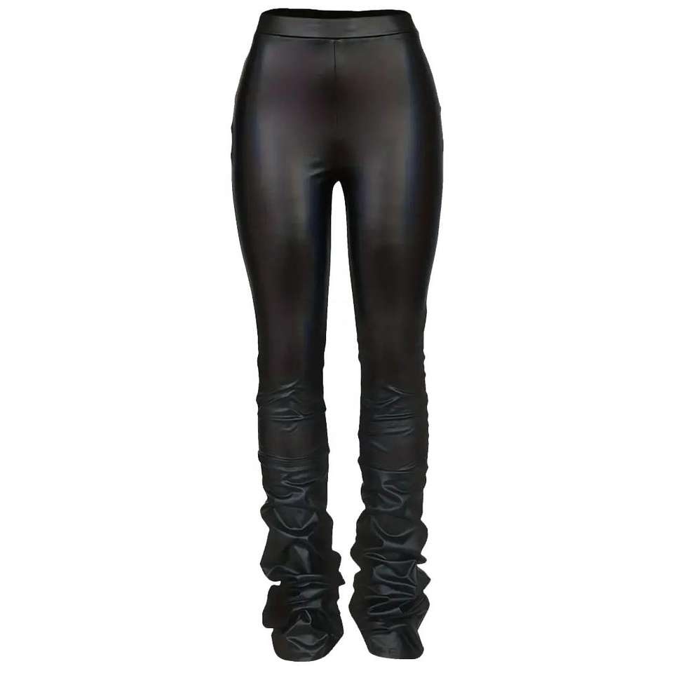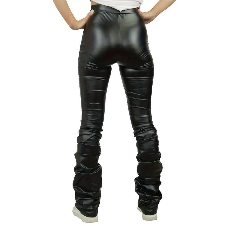 กางเกงวอร์มหนังเทียมขาบานสำหรับผู้หญิงกางเกงหนังฮิปฮอปแนวสตรีทแบบสั่งทำมีสไตล์