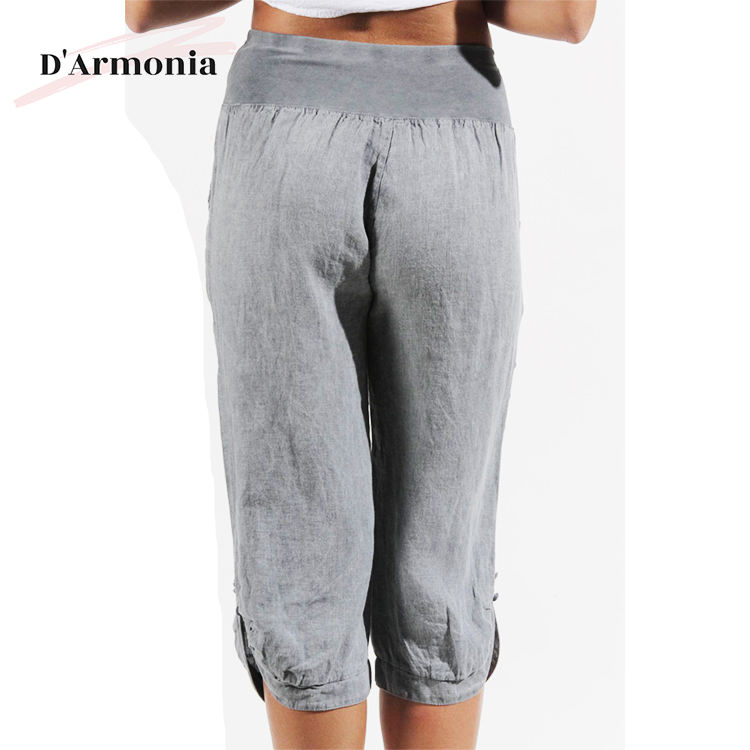 กางเกงขาสั้นลำลองสำหรับผู้หญิงสีพื้นบางเรียบสไตล์อิตาลี