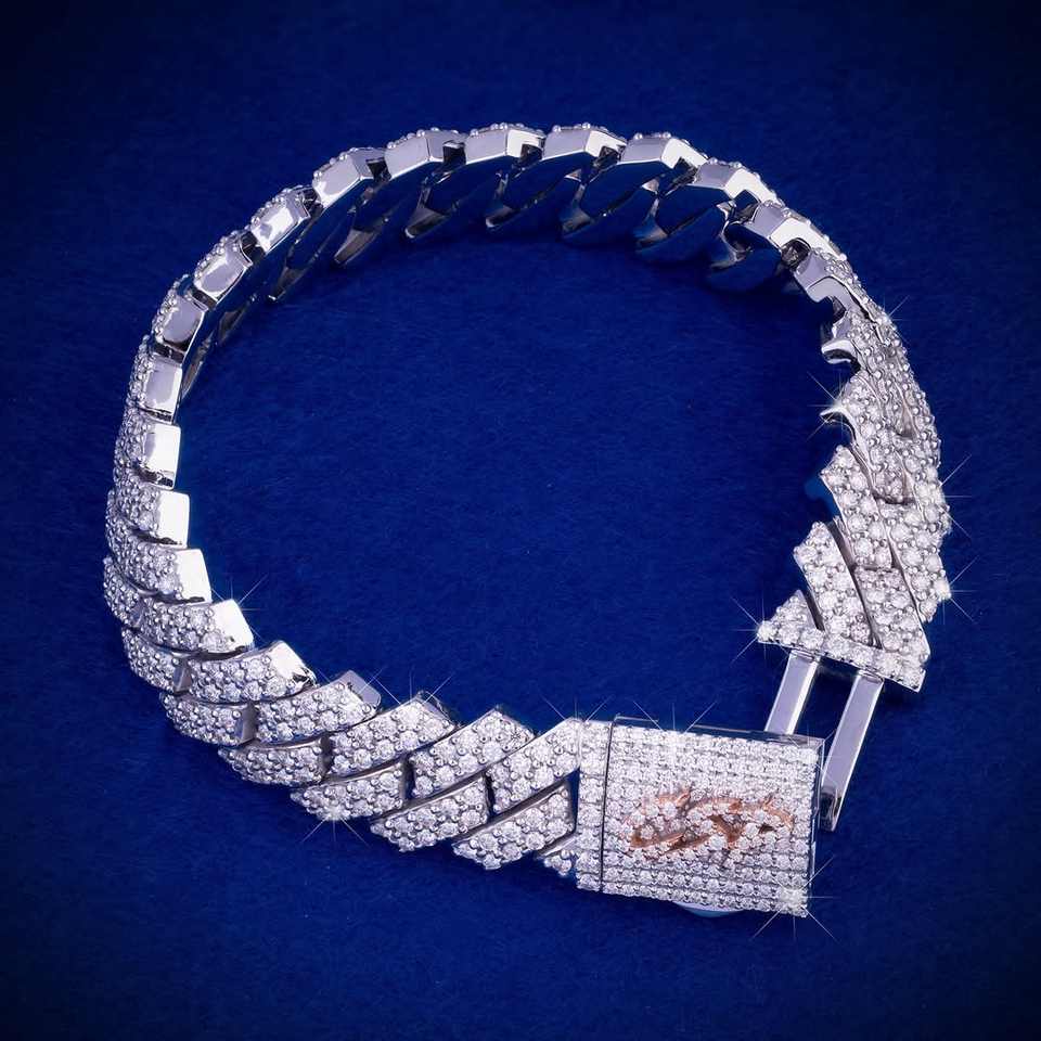 เครื่องประดับแฟชั่นใหม่ สไตล์แร็ปเปอร์ ฮิปฮอป ชุบโรเดียม ประดับโมอิสซาไนต์ สร้อยข้อมือแต่งงาน เงินแท้ 925 แบบคิวบา ประดับเพชรทรงเหลี่ยมคมชัด
