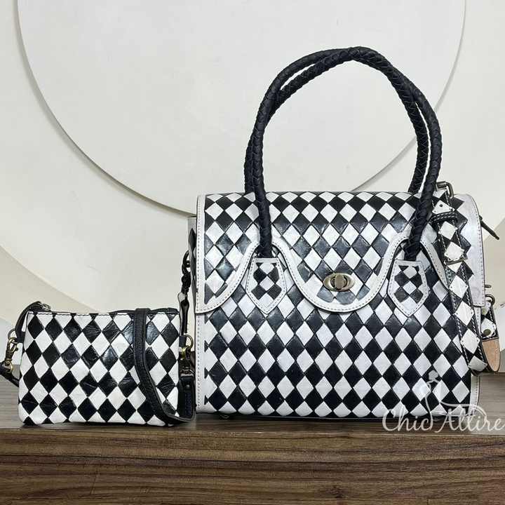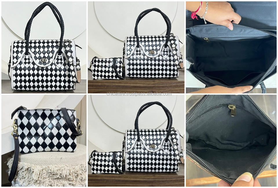 Product name:Hand Tooled Checkered Leather Matching 2-Piece Sets